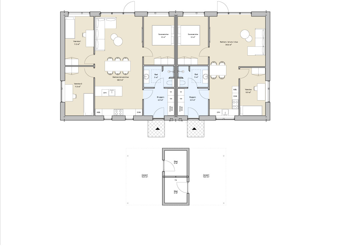 Udover en moderne bolig, hvor der naturligvis er gulvvarme og alt i hårde hvidevarer med til, kommer der til boligen også en carport, en ekstra p-plads samt skur. Grundene til husene varierer fra 300 – 350 m².